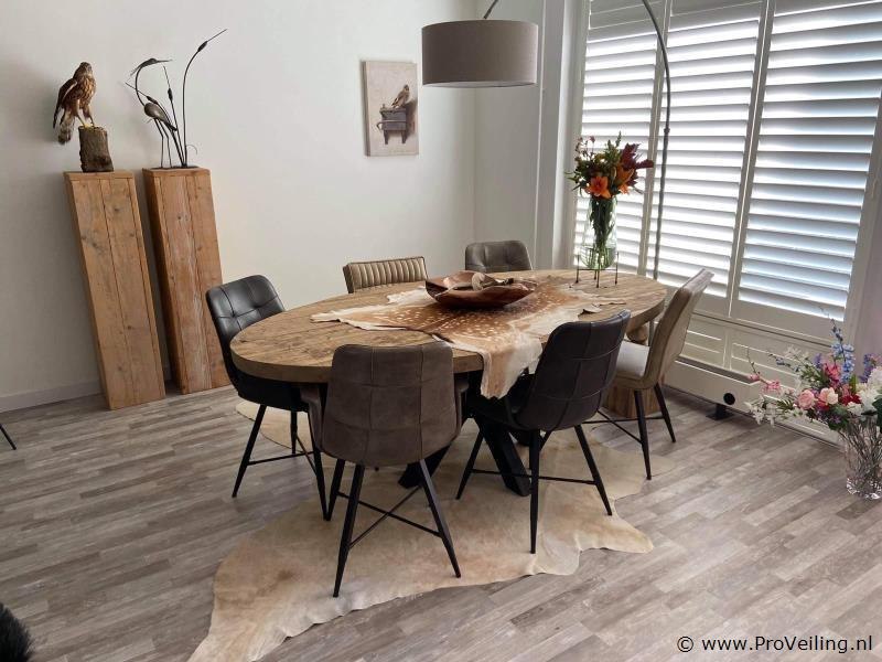 Ovale eettafel met matrix onderstel; maatvoering ca. 250x95cm.