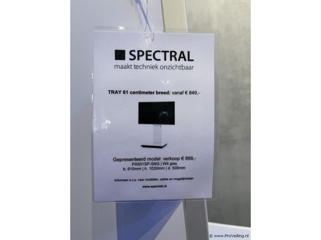 Tv-meubel: merk Spectral; model Tray; type PX601SP-SNG; wit glas; afmetingen ca. 61x103x50cm; winkelverkoopprijs ca. 899,-.