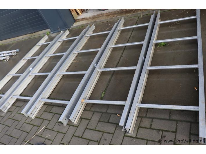 Plateau plank/plaat houders; afmetingen ca. 217x60x10cm; aantal 4 stuks.