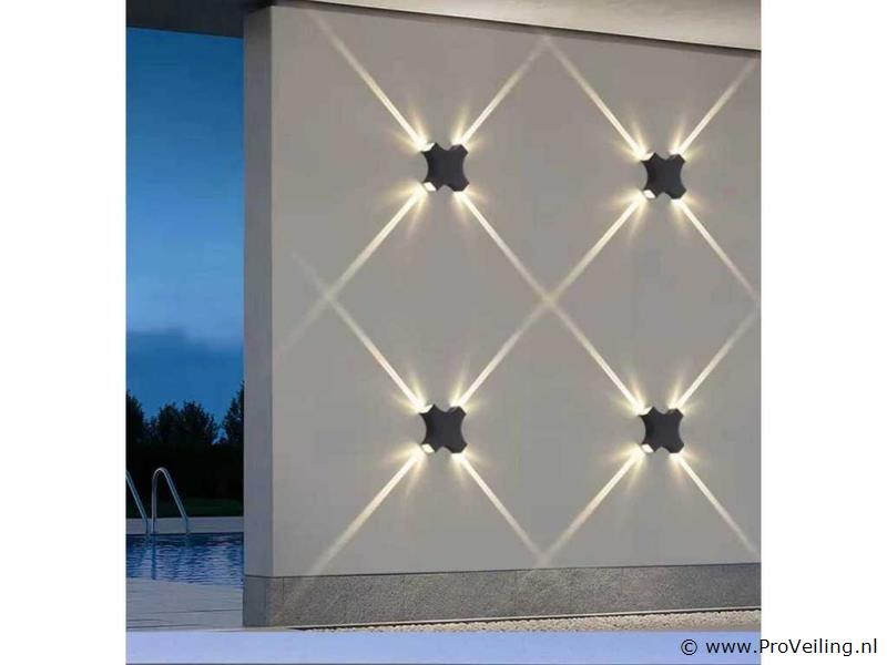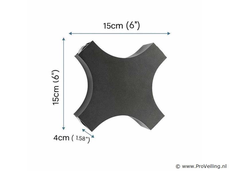2 x 4W Hexa LED Wandlamp - Waterdicht (IP54) - 3500K (Warm Wit) - Artikelnummer: SW-2322 - Zwart - COB LED - 300 Lumen - Afmetingen: 150 x 150 x 40 mm - Aluminium - Spanning: 220-240V (50-60Hz) - Levensduur: 30.000 uur - Inclusief montageset - Inclusief lamp - Geschikt voor gebruik binnen en buiten