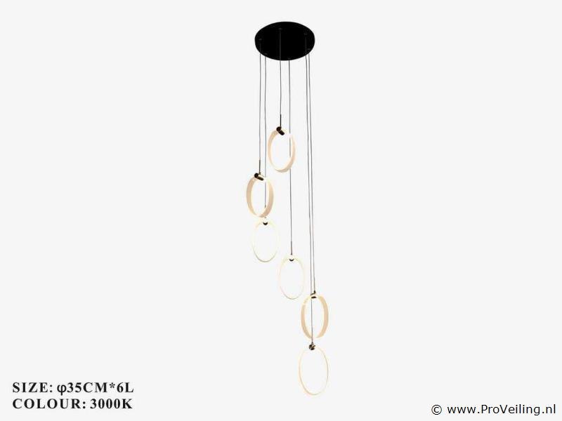 LED hanglamp model B069/6 – Kleurtemperatuur 3000K (warm wit) – Diameter: 350 mm – In hoogte verstelbaar – BronLicht: geïntegreerde LED-strip – Spanning: 220-240V (50/60 Hz) – Inclusief montageset – Ideaal voor gebruik binnenshuis: woonkamers, slaapkamers, kantoren of woonruimtes – 3 jaar garantie.