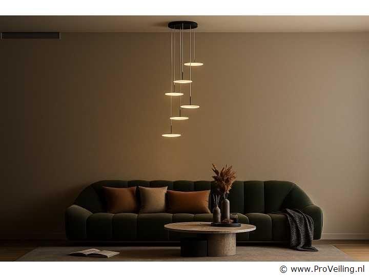 LED hanglamp model B060/6 – Kleurtemperatuur 3000K (warm wit) – Diameter: 350 mm – In hoogte instelbaarE – Lichtbron: geïntegreerde LED-strip – Spanning: 220-240V (50/60 Hz) – Inclusief montageset – Ontworpen voor moderne en stijlvolle binnenverlichting – Ideaal voor woonkamer, eetkamer, slaapkamer of kantoor – 3 jaar garantie.