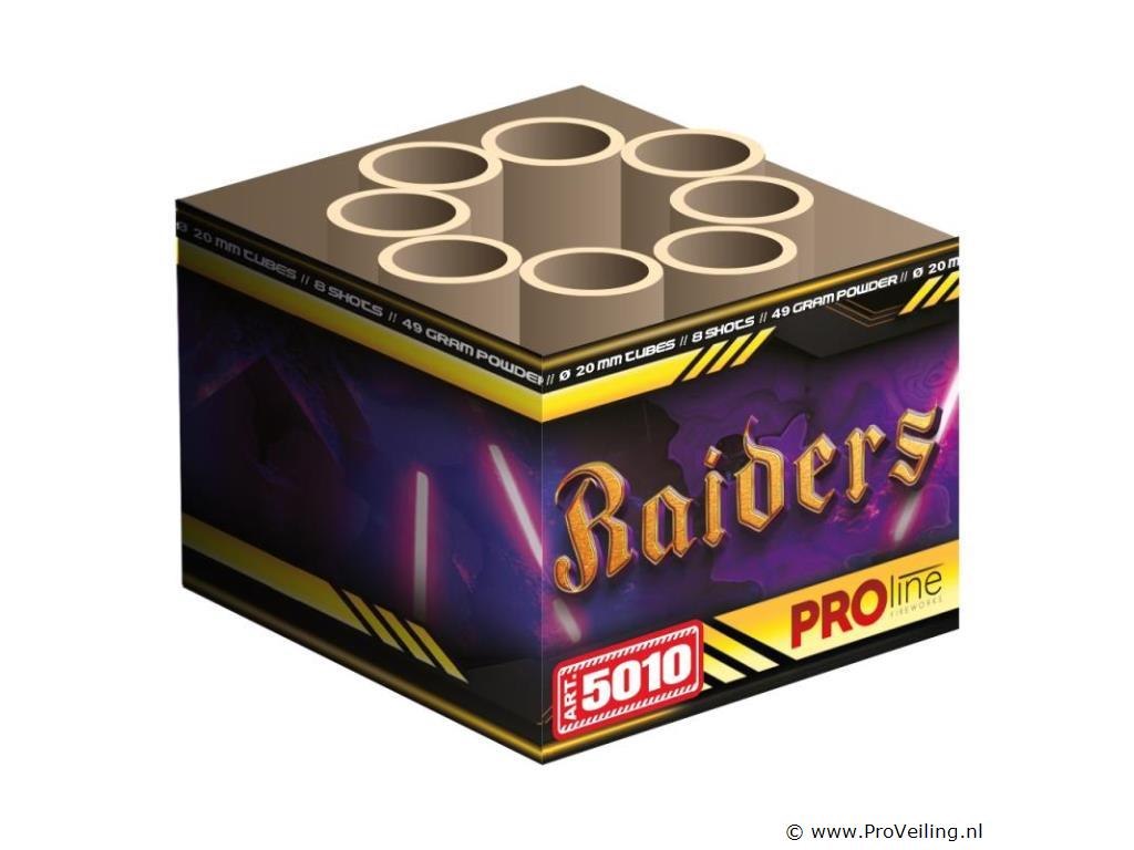 De Raiders van PRO-line Fireworks is een kleine maar fijne siercake met 8 schoten in 20mm tubesize. Deze kleine cake is ontwikkeld volgens de laatste veiligheidsnormen zodat het grondvlak groter is, wat de cake stabieler maakt dan een originele 8 schots cake.