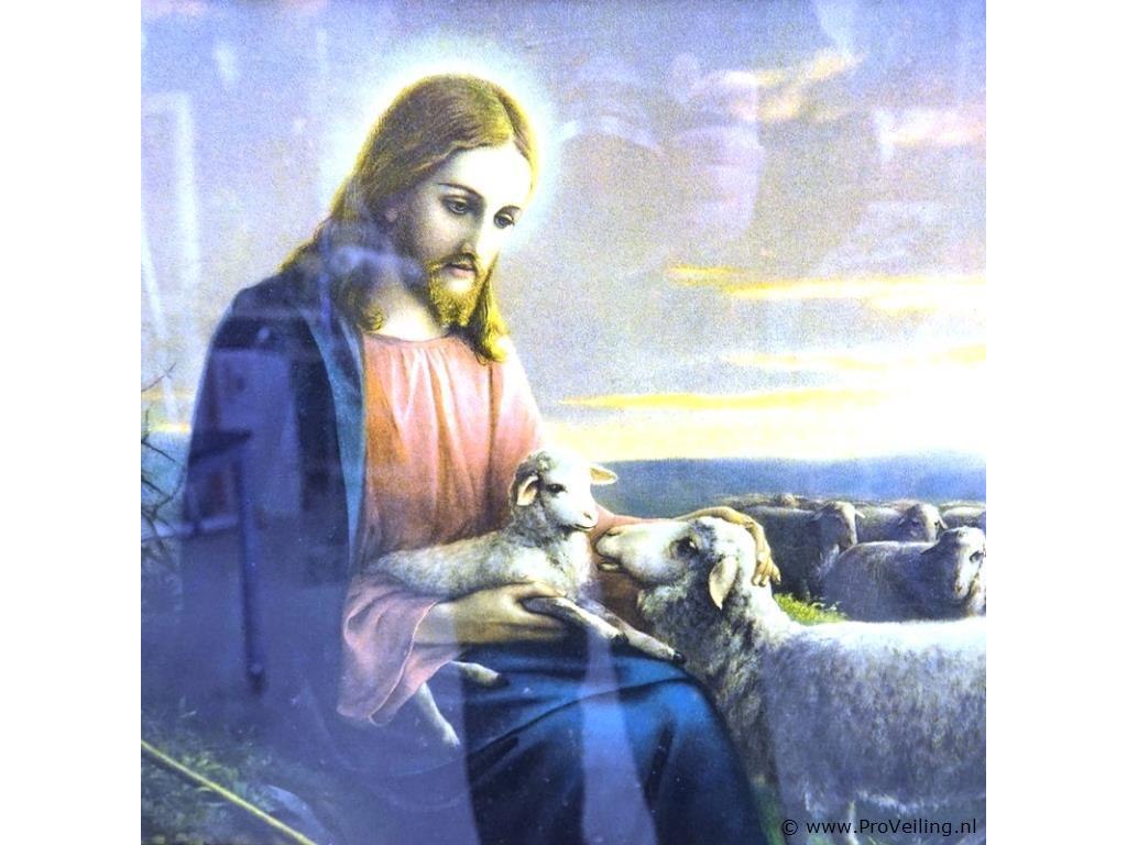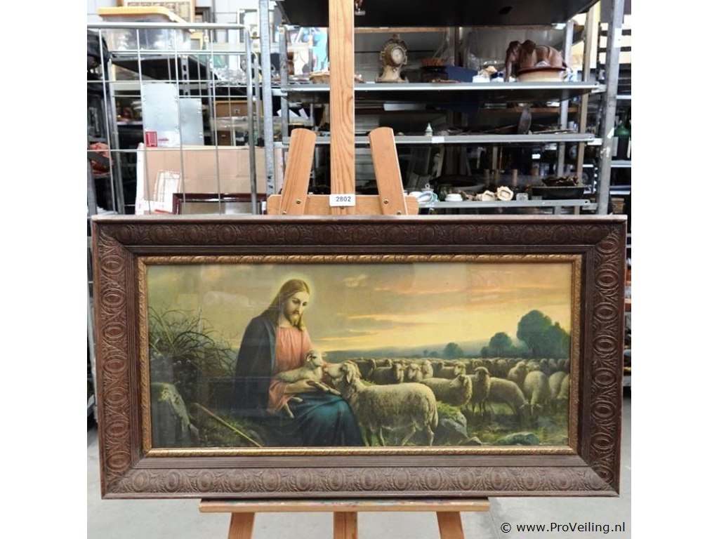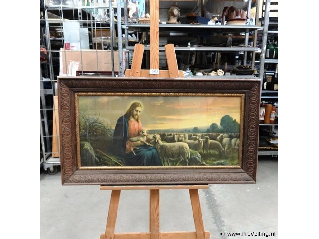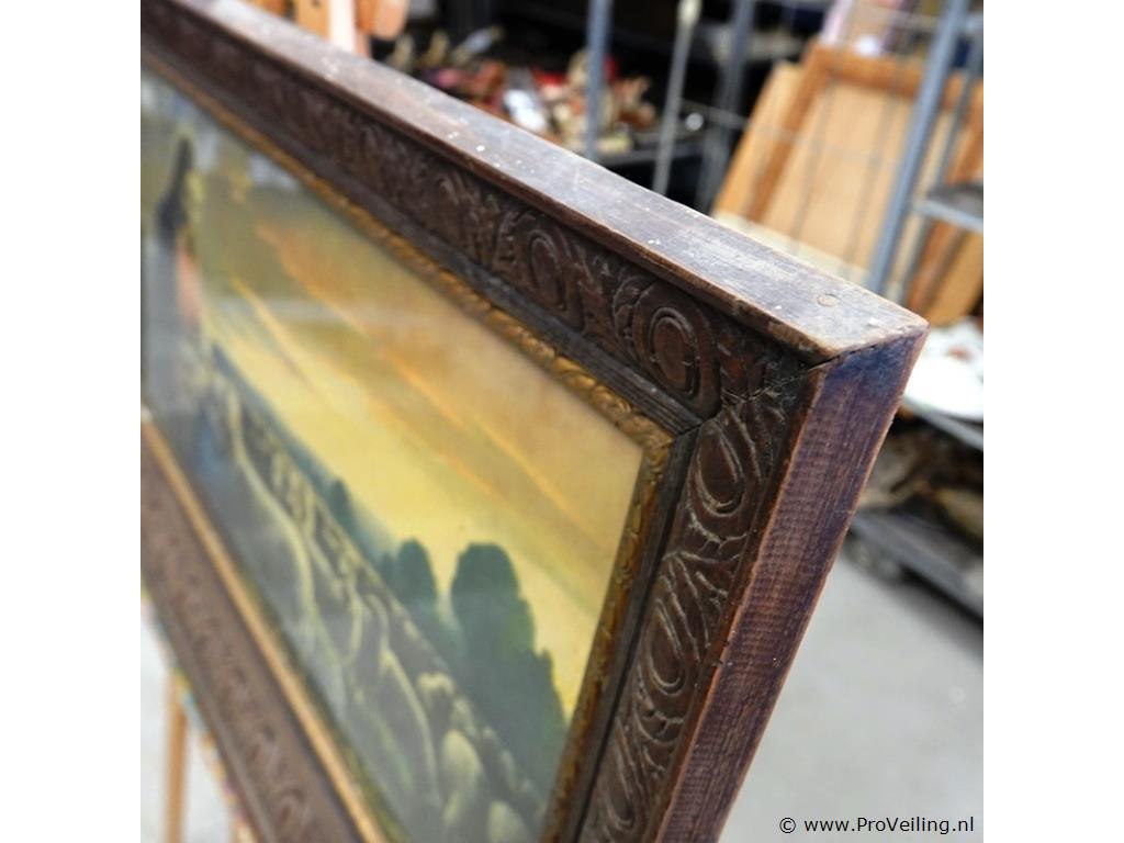Oude religieuze voorstelling in fraaie gesneden houten lijst