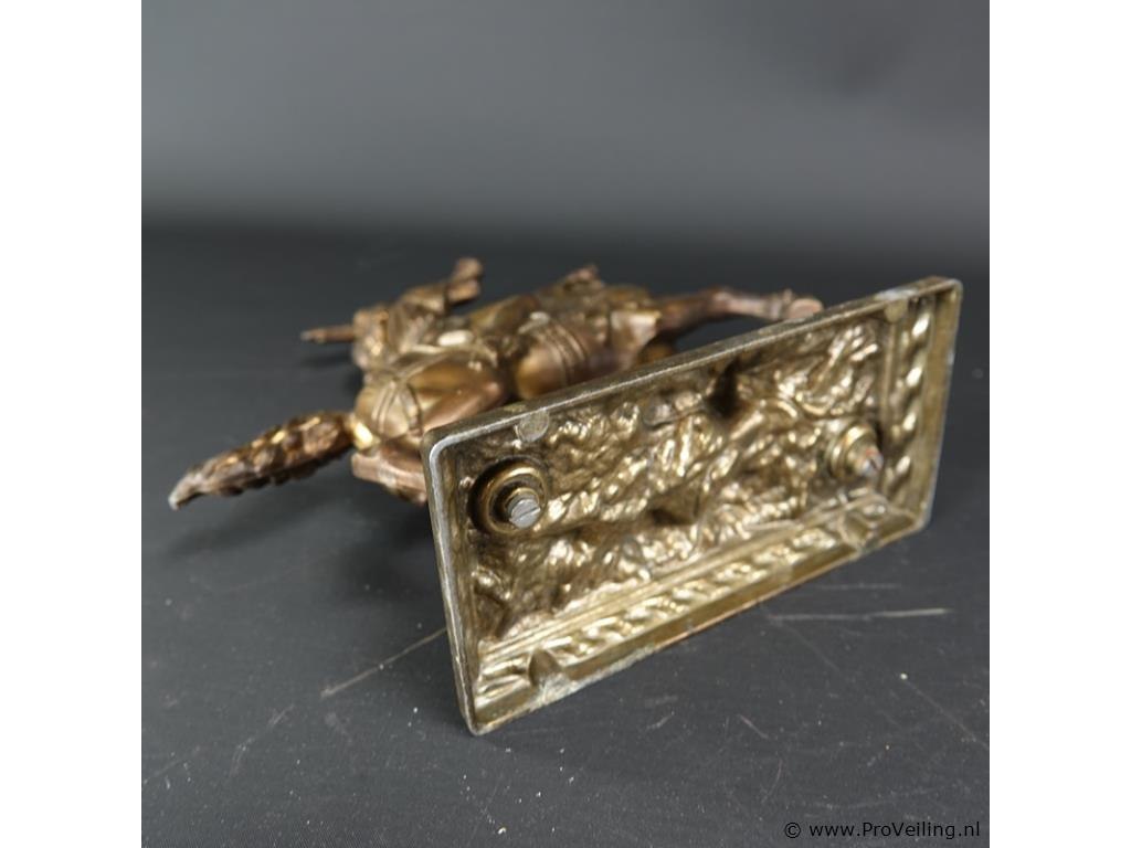 Messing beeld van een hoornblazer te paard
