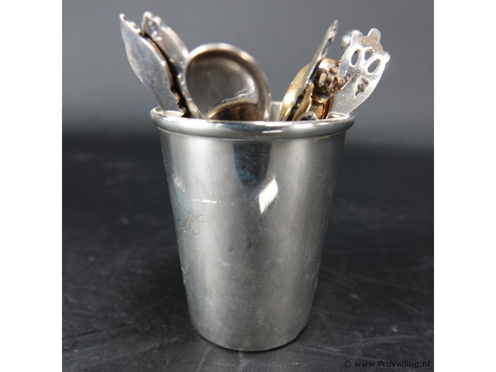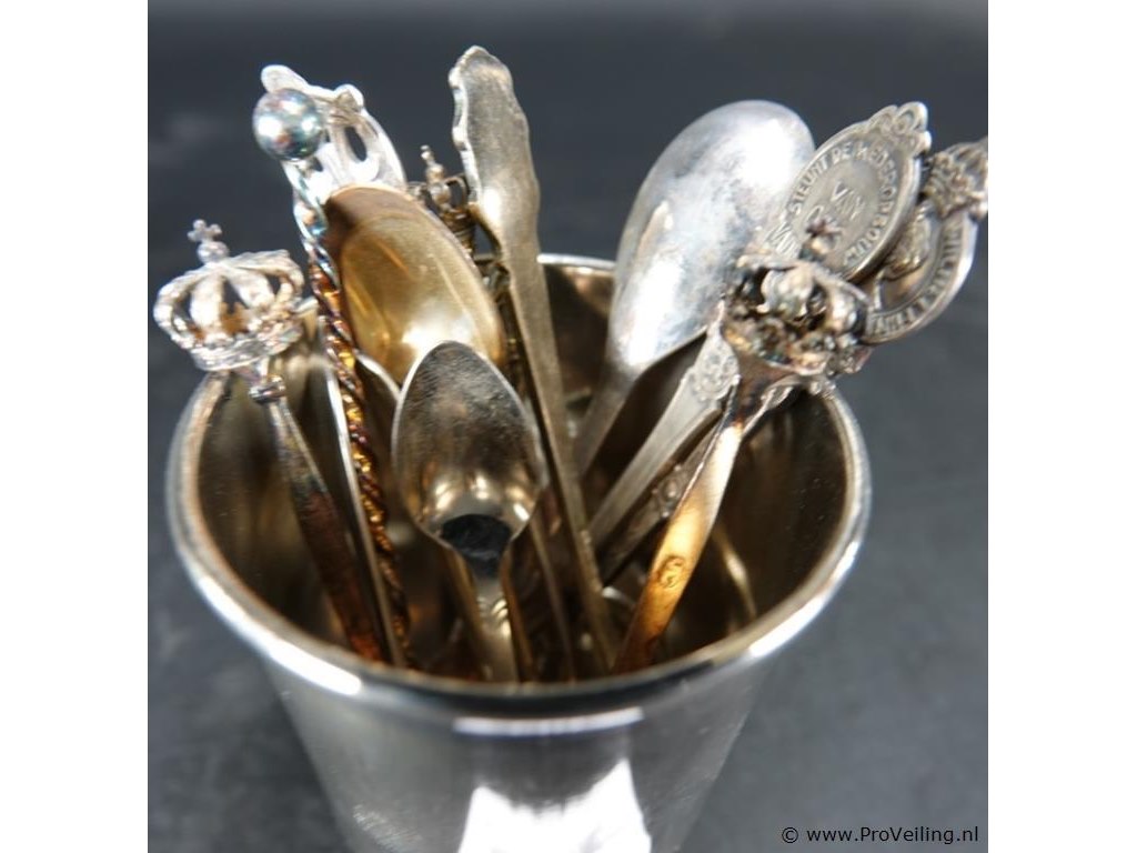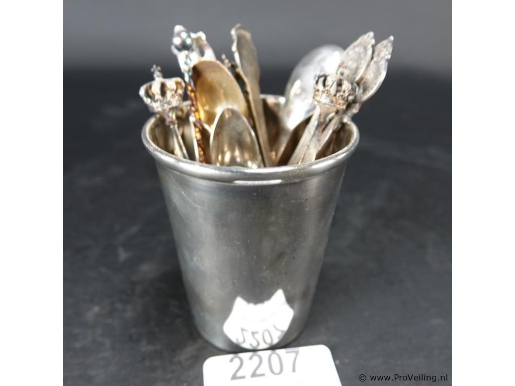 Verzilverde lepelbeker met lepeltjes