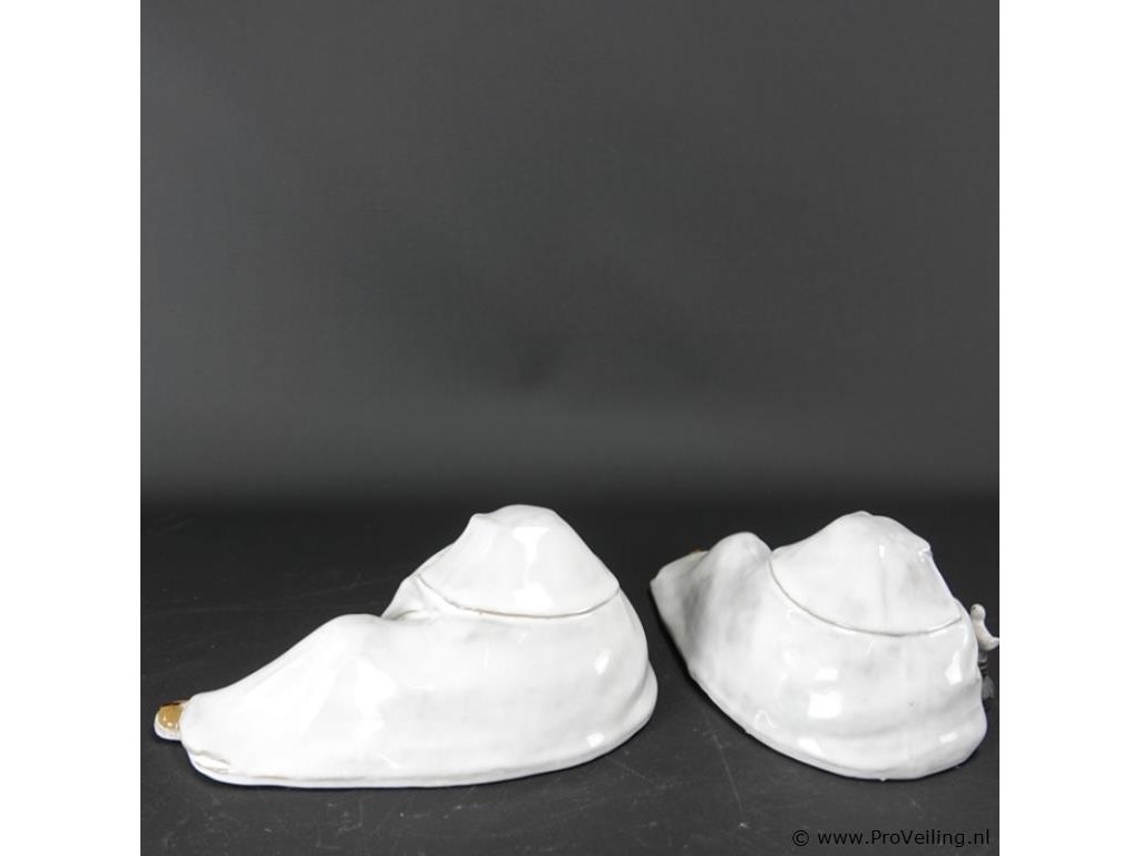 Paar gestileerde aardewerk Happy Boeddha's. L21cm/866Gr. Dit betreft een tijdens transport kwetsbaar product! Uw transportrisico voor deze kavel is zeker in combinatie met andere kavels hoog. Lees daarom a.u.b. ook de extra veilinginformatie voor deze veiling!.