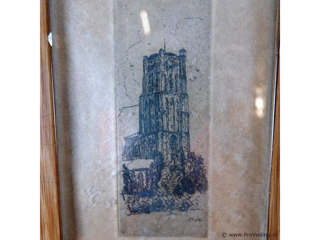 In passe-partout, achter glas en in houten lijst. H29cm/B19cm/430Gr. Dit betreft een tijdens transport kwetsbaar product! Uw transportrisico voor deze kavel is zeker in combinatie met andere kavels hoog. Lees daarom a.u.b. ook de extra veilinginformatie voor deze veiling!.
