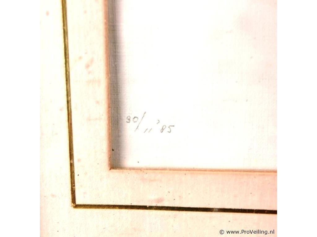 In passe-partout, achter glas en in houten lijst. H25cm/B20cm/332Gr. Dit betreft een tijdens transport kwetsbaar product! Uw transportrisico voor deze kavel is zeker in combinatie met andere kavels hoog. Lees daarom a.u.b. ook de extra veilinginformatie voor deze veiling!.