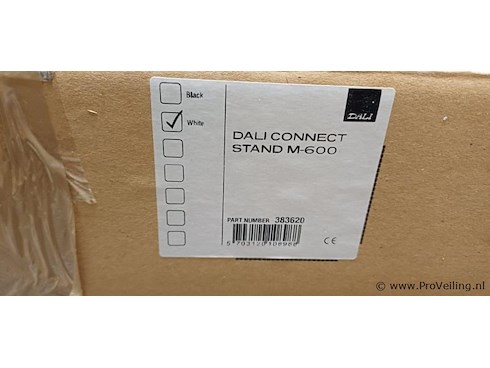 Luidsprekerstandaard: merk Dali; type M-600; kleur wit; set van 2 stuks; afmetingen ca. 11x50x73cm; gewicht 13,1kg.