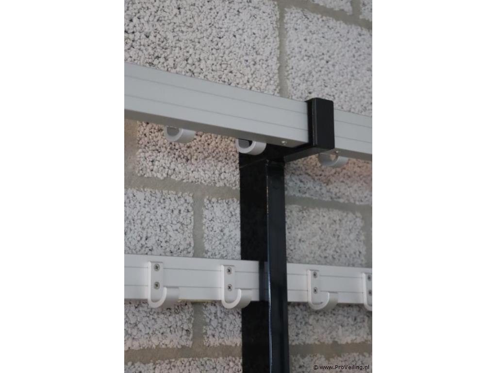 Kleedkamerbank met kapstok; afmetingen ca. 200x39x175cm; door koper zelf vakkundig te demonteren op aanwijzing van ProVeiling. Attentie: zit aan de muur vast geschroefd.