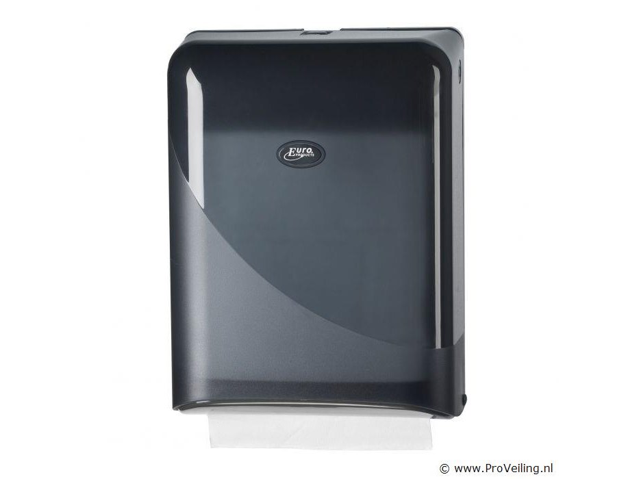 Handdoekdispenser: merk Euro Products; afmetingen ca. 23x24x36cm; door koper zelf vakkundig te demonteren op aanwijzing van ProVeiling.