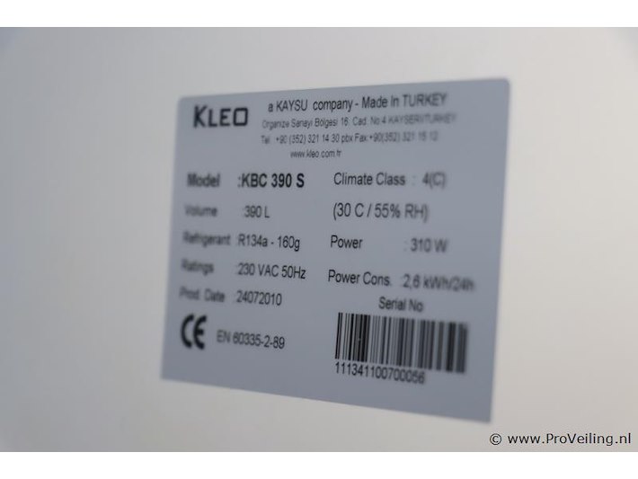 Kleo koelkast model kbc 390 s - 60x60x188cm