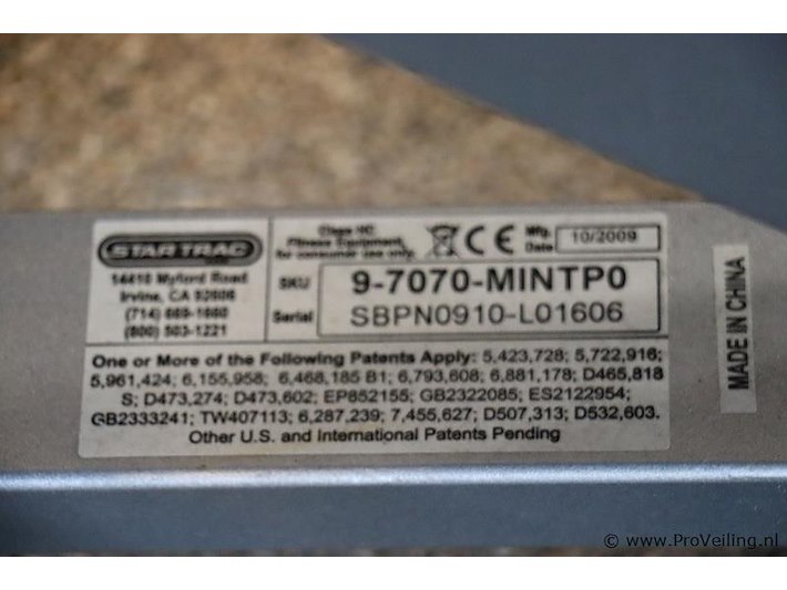 Spinningfiets: merk Star Trac; type Spinner; bouwjaar: 2009; afmetingen ca. 97x50x112cm.