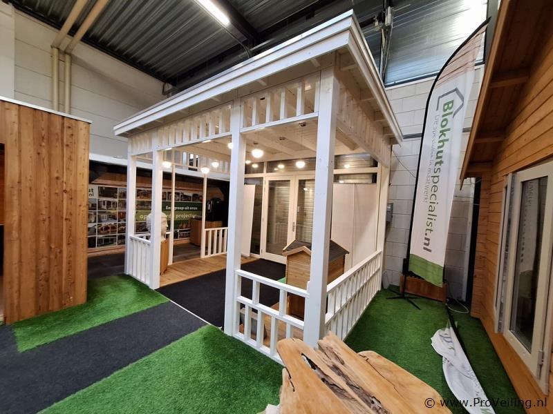 Houten veranda, geverfd; afmetingen ca. 500x300cm; door koper zelf vakkundig te demonteren op aanwijzing van ProVeiling. Excl. Inhoud.