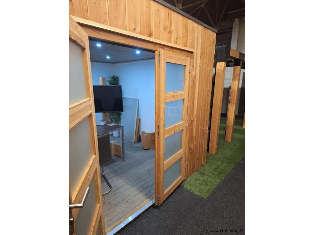 Flexwood (Douglas) tuinkantoor; afmetingen ca. 320x300cm; door koper zelf vakkundig te demonteren op aanwijzing van ProVeiling. Excl. inventaris.