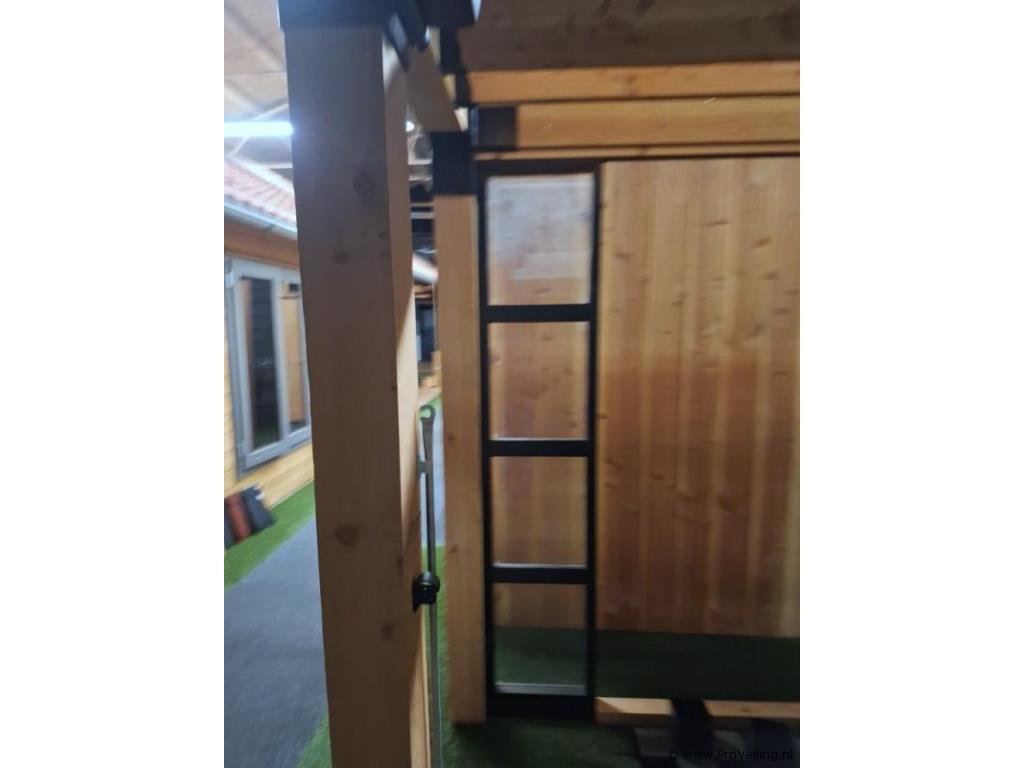 Pergola met roldoek; afmetingen ca. 400x200cm; door koper zelf vakkundig te demonteren op aanwijzing van ProVeiling. Excl. inventaris.