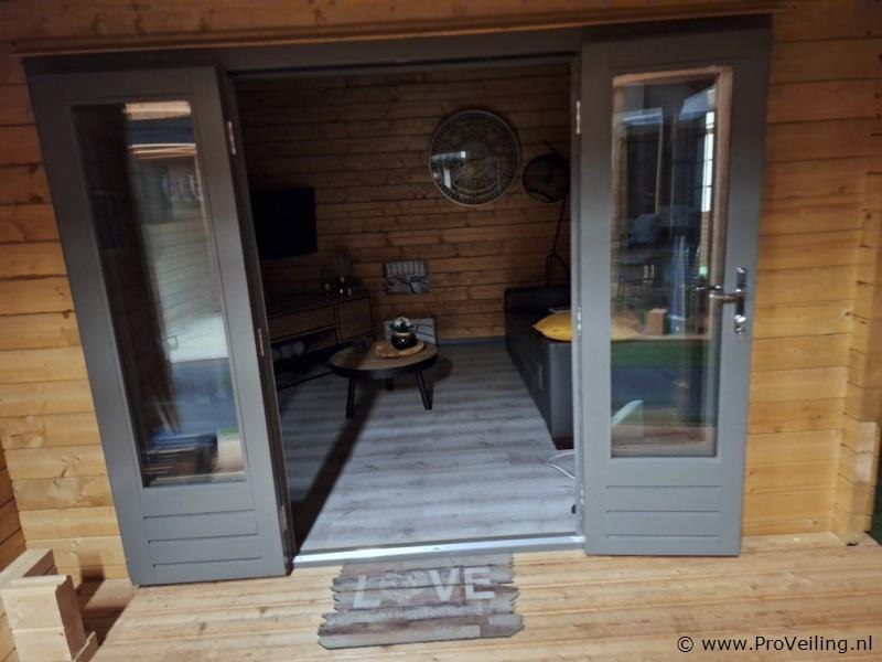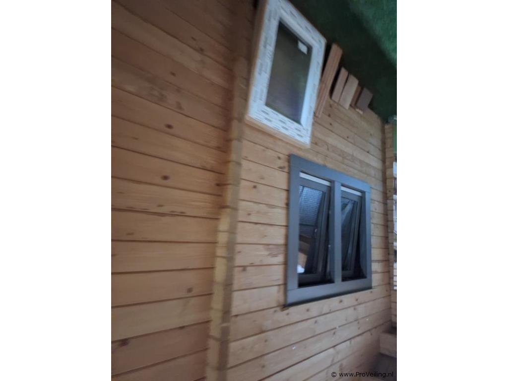 Lugarde (Vuren) blokhut; 68 mm dikke wand; afmetingen ca. 890x470cm; door koper zelf vakkundig te demonteren op aanwijzing van ProVeiling. Excl. inventaris.