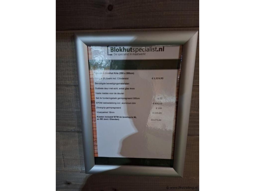 Tuindeco tuinhuis blokhut Kris; afmetingen ca. 290x200cm; door koper zelf vakkundig te demonteren op aanwijzing van ProVeiling. Excl. inventaris.