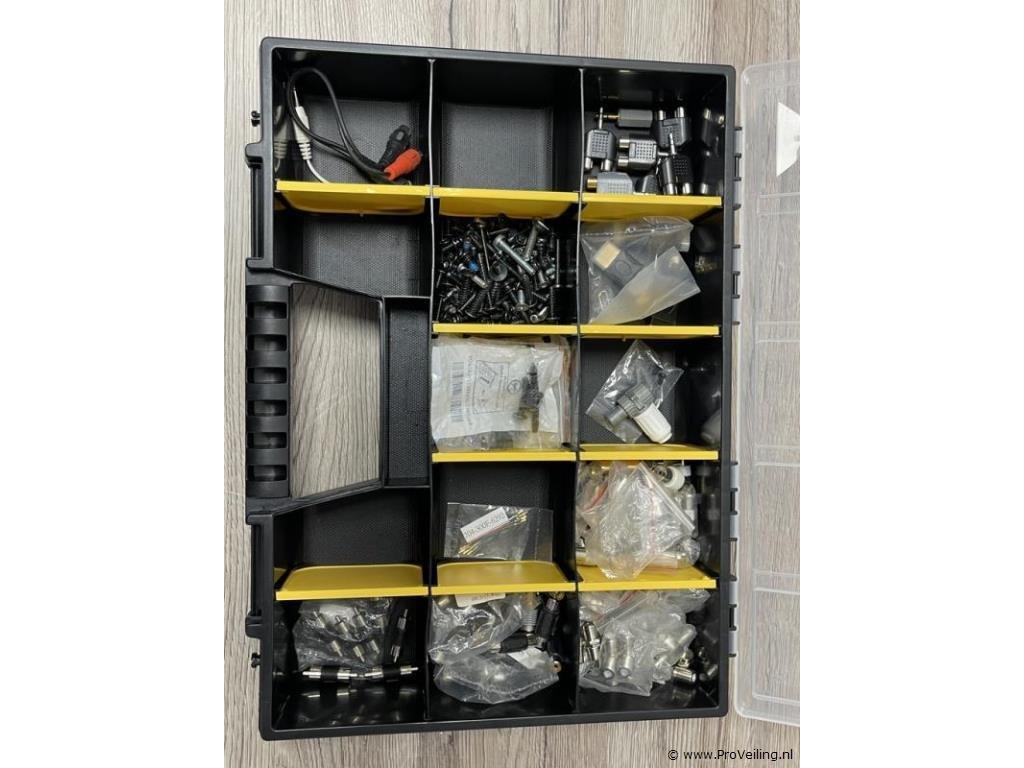 Assortimentsdoos incl. inhoud bestaande uit o.a. schroeven, kabels & stekkers