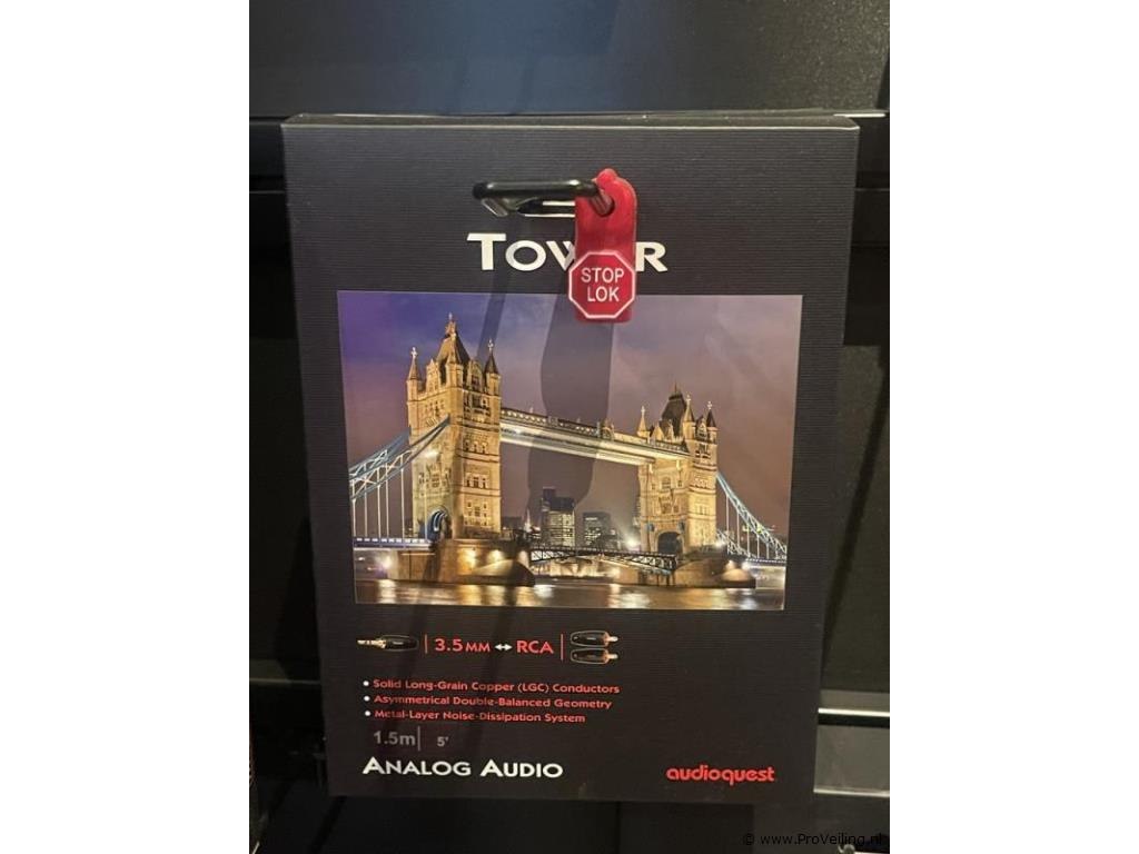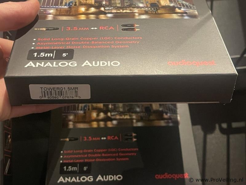 Audio Interconnect kabel: merk Audioquest; type Tower; 1,5mtr; winkelverkoopprijs ca. € 54,95. luit een breed scala aan audio-elektronica aan met deze AudioQuest Tower 3,5 mm Mini 2-Male RCA analoge interconnect, zorgvuldig ontworpen voor uitstekende flexibiliteit en veelzijdigheid. Solide Long-Grain Copper (LGC) geleiders minimaliseren vervorming, Foamed-Polyethylene isolatie behoudt dynamische contrasten, en een Metal-Layer Ruis-dissipatie dissipeert efficiënt hoogfrequent geluid voor schonere, helderdere, en natuurlijk mooiere muziek.