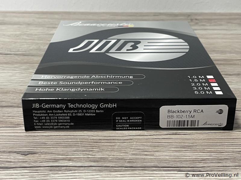 Hi-Fi signaalkabel: merk JIB Boaacoustic; type Blackberry RCA BB-102-1.5M; nieuw in verpakking; winkelverkoopprijs ca. € 45,-.
