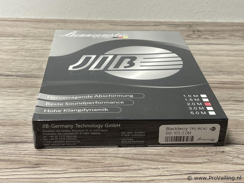 Hi-Fi signaalkabel: merk JIB Boaacoustic; type Blackberry TRS-RCA2 BB-103-2.0M; nieuw in verpakking; winkelverkoopprijs ca. € 70,-.