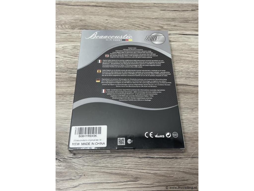 Hi-Fi signaalkabel: merk JIB Boaacoustic; type Blackberry Toslink BB-101-1.5M; nieuw in verpakking; winkelverkoopprijs ca. € 45,-.