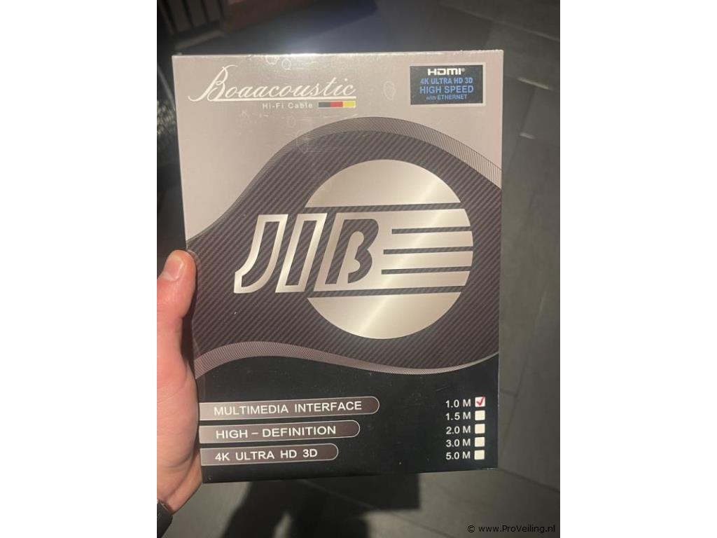 HDMI-kabel High Definition 4K Ultra HD 3D: merk JIB; type Blackberry; 1mtr; winkelverkoopprijs ca. € 100,-.