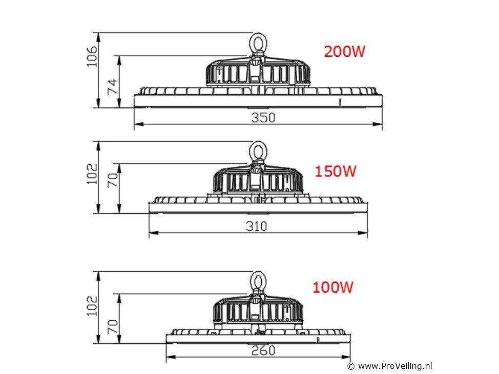 4 x Highbay UFO 200 Watt LED in PRO-ontwerp biedt hoge efficiëntie met 24.000 lumen bij 120 lumen per watt - Uitgerust met Professioneel LED voor superieure helderheid en betrouwbaarheid - Dimbaar met een schakelaar die 3 verschillende standen biedt: 60%/80%/100% vermogen - Aangedreven door een hoogwaardige Lifud-driver. die stabiele prestaties garandeert - Neutraal wit licht bij 4000K voor heldere. gebalanceerde verlichting - Waterdicht met een IP65-classificatie. ideaal voor zowel binnen- als buitengebruik - Afmetingen: Ø 350mm x 106mm voor eenvoudige installatie - Duurzame constructie van gegoten aluminium met een PC-lens. met een levensduur van 30.000 uur - 90° stralingshoek voor brede lichtdekking - Energiezuinig met een power factor 0.95 - Hoge CRI 80 voor nauwkeurige kleurweergave - Compatibel met 110-265V - Geleverd met 5 jaar garantie voor gemoedsrust - Weinig onderhoud door de lange levensduur - Efficiënte warmteafvoer voorkomt oververhitting - Milieuvriendelijk en kosteneffectief. verlaagt de energiekosten - Biedt flikkervrij. stabiel licht.