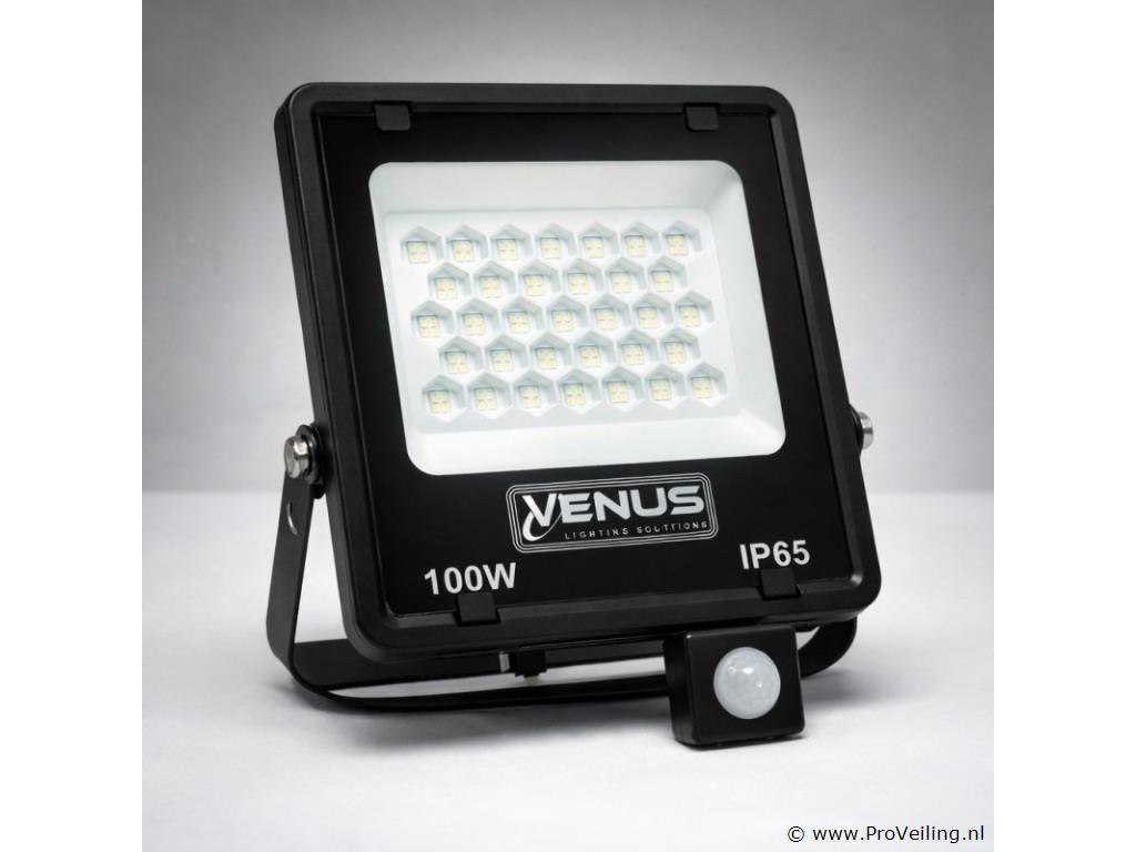 6 x LED Schijnwerper 100W met sensor – 6500K Koud wit – IP65 – – Vermogen: 100W – Lichtstroom: 10000 lumen – Kleurtemperatuur: 6.500K (koud wit) – Type dE LED: SMD met lens – Beamhoek: 120° – Kleurweergave-index (IRC): 80 Ra – Biedt intense. gelijkmatige verlichting voor grote oppervlakken – IP65 (beschermd tegen stof en waterstralen) – Inclusief LED-driver voor stabiele prestaties – DimensIonen: 245 x 215 x 45 mm – Spanning: 170-260V (50/60Hz) – Levensduur: 30.000 uur – Geschikt voor gebruik binnen en buiten – Ideaal voor tuinen. gevels. magazijnen en industriële ruimtes.