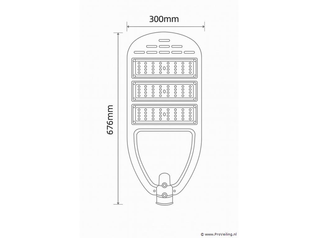 6 X LED Straatverlichting 150W met sensor – 6500K – IP65 – LED-straatverlichting – Vermogen: 150W – Lichtstroom: 15.000 lumen – Kleurtemperatuur: 6.500K (koud wit) – LED-type: SMD – Beamhoek: 120° met – IP65 lens (icht waterdicht. proteGé tegen stof en waterstralen) – Automatische verlichting dankzij bewegingsdetectie – Afmetingen: 676 x 300 x 110 mm – Installatiediameter: Ø 60 mm (compatibel met standaard masten) – Materiaal: hoogwaardig aluminium – Spanning: 85-265V (50/60Hz) – Levensduur: 30.000 uur – Eenvoudige installatie – Ideaal voor efficiënte verlichting van grote buitenoppervlakken.