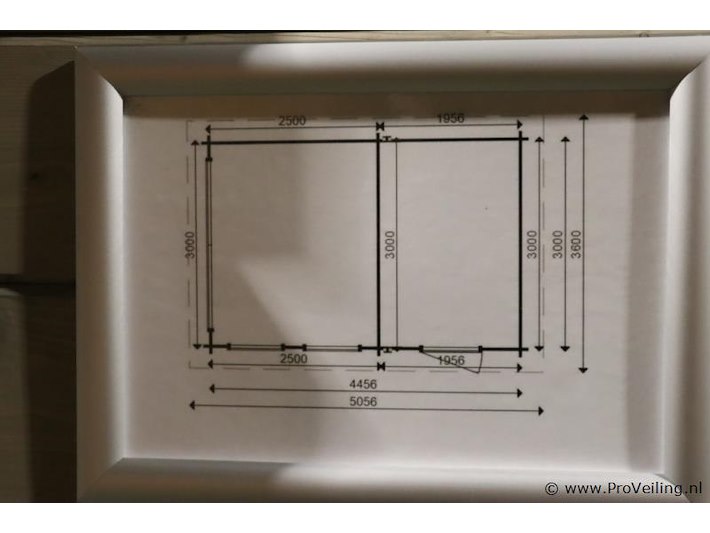 Woodpro (Vuren) blokhut; afmetingen ca. 445x300cm; door koper zelf vakkundig te demonteren op aanwijzing van ProVeiling. Excl. inventaris.