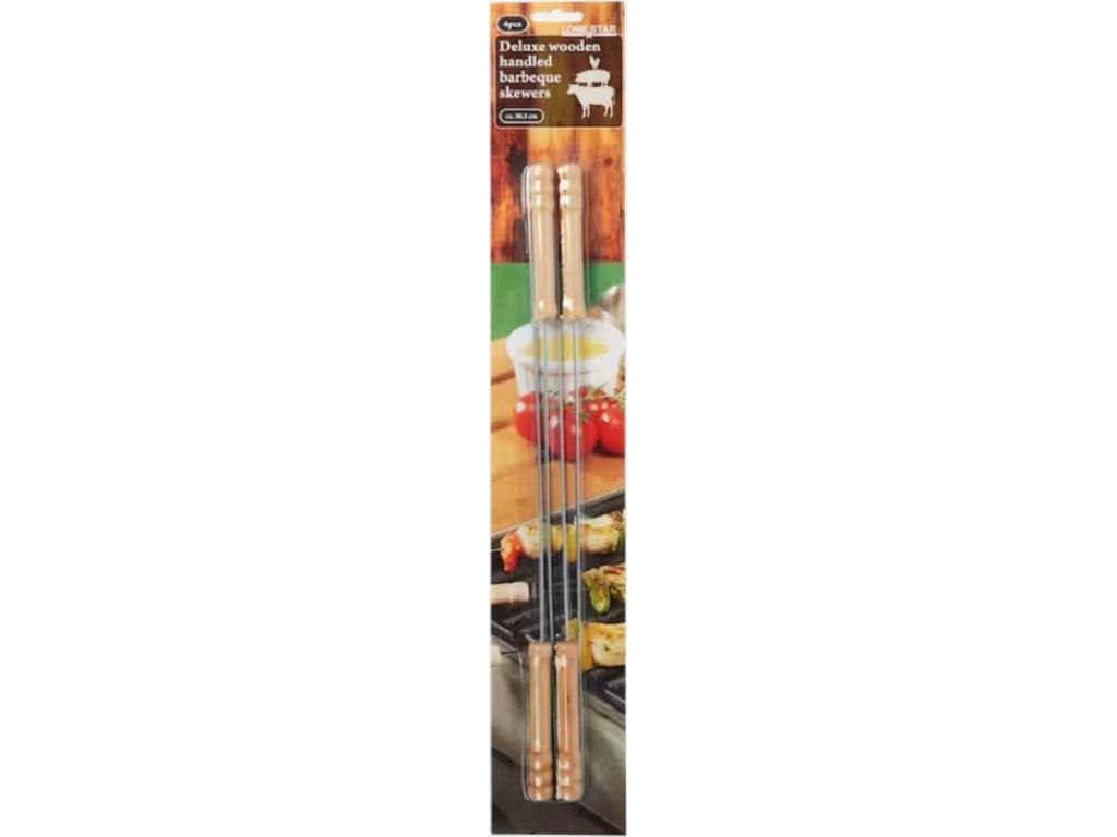 Herbruikbare vleesspiezen 38,5cm met houten handvat -gebruik op de barbecue-makkelijk in gebruik en reinigen