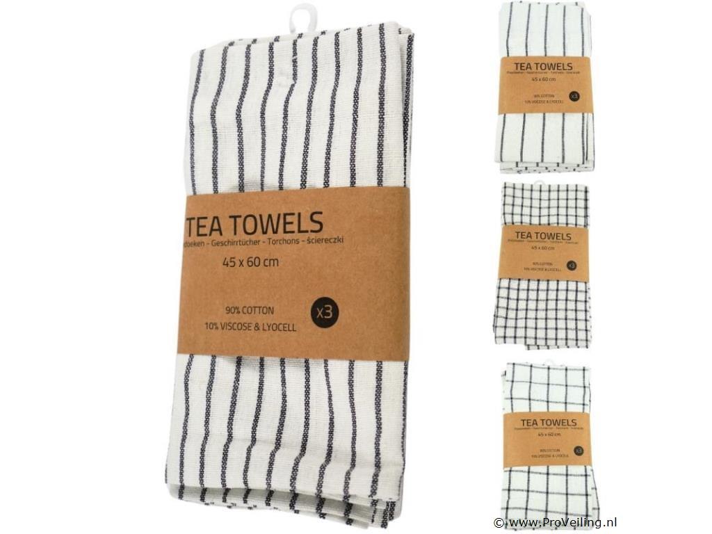 Keukenhanddoeken in horeca kwaliteit-4modellen in streep en ruit motief