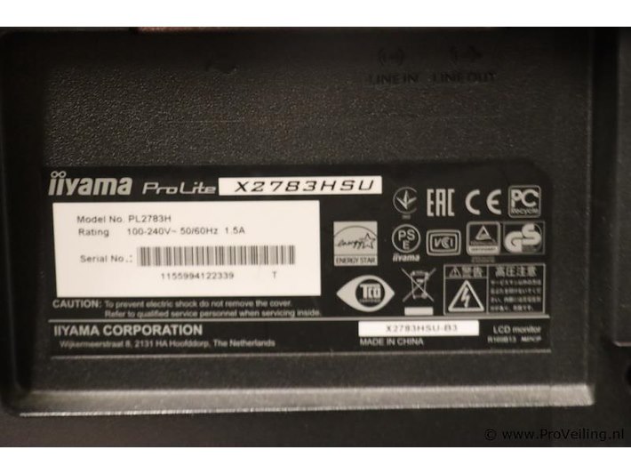 Iiyama ProLite LCD-monitor X2783HSU incl. monitorstandaard; afmetingen ca. 60x2x37cm; aantal 2 stuks; door koper zelf vakkundig te demonteren op aanwijzing van ProVeiling.