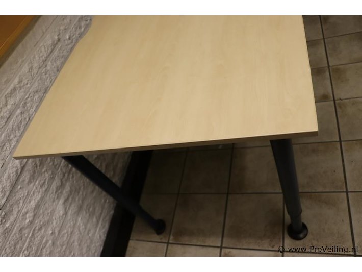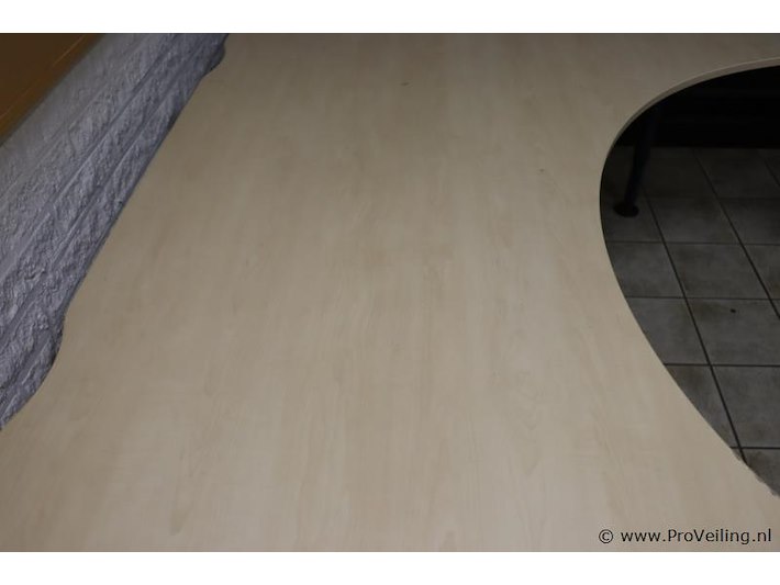 Hoekbureau met uitsparing; voorzien van verstelbare poten; afmetingen ca. 200x120x78cm.