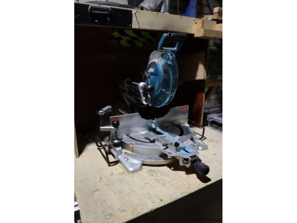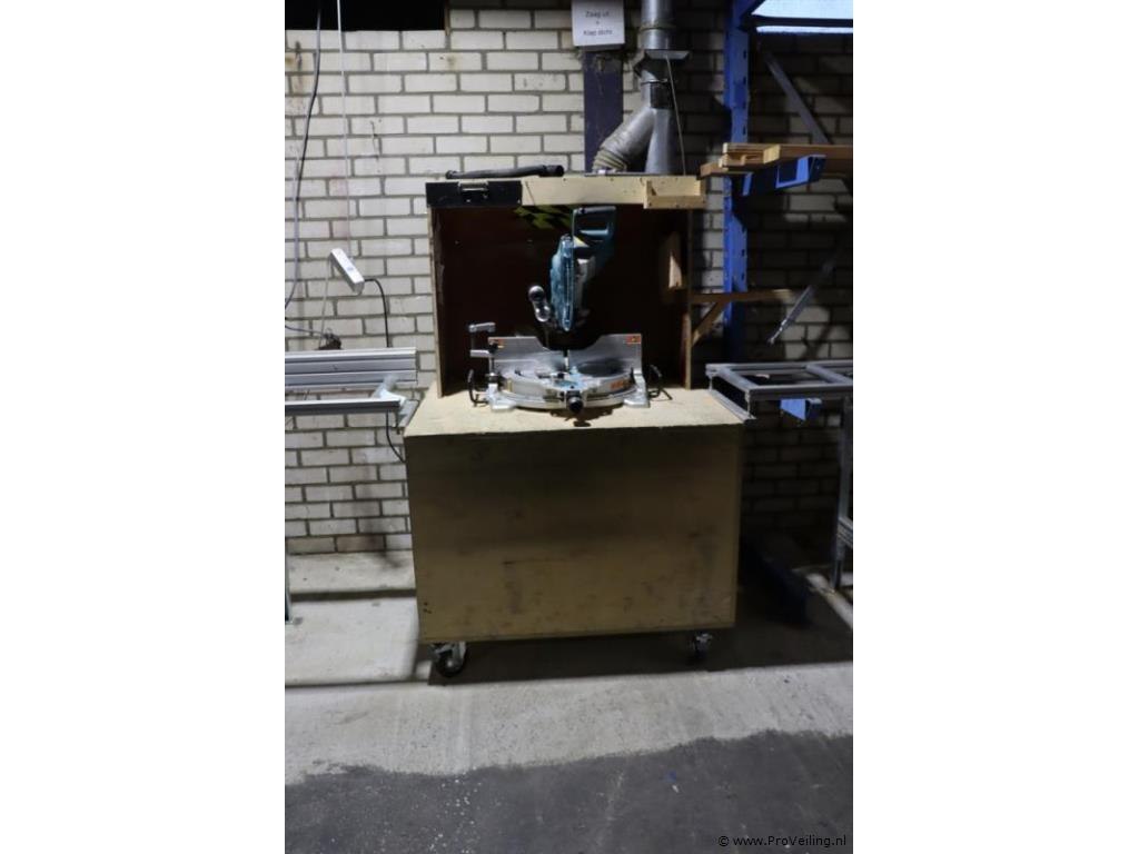 Makita radiaal afkortzaag ls1019l incl. afzuiging en houten onderstel op wielen