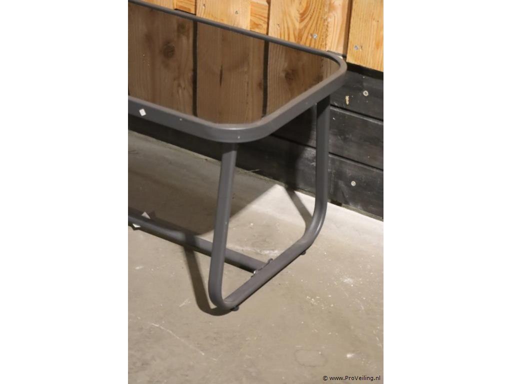 Tuinmeubelset bestaande uit tafel, bankje en 2 stoelen; afmetingen tafel ca. 75x45x43cm; bankje ca. 114x75x78cm; zithoogte ca. 38cm; stoelen ca. 75x78x38cm.