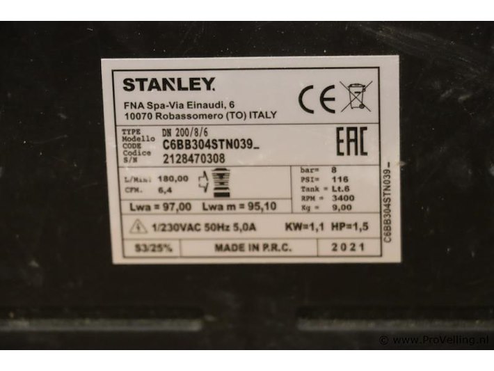 Stanley luchtcompressor dn 200/8/6 c6bb304stn039