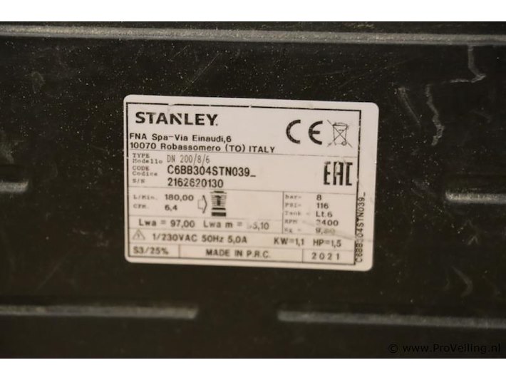 Stanley luchtcompressor dn 200/8/6 c6bb304stn039