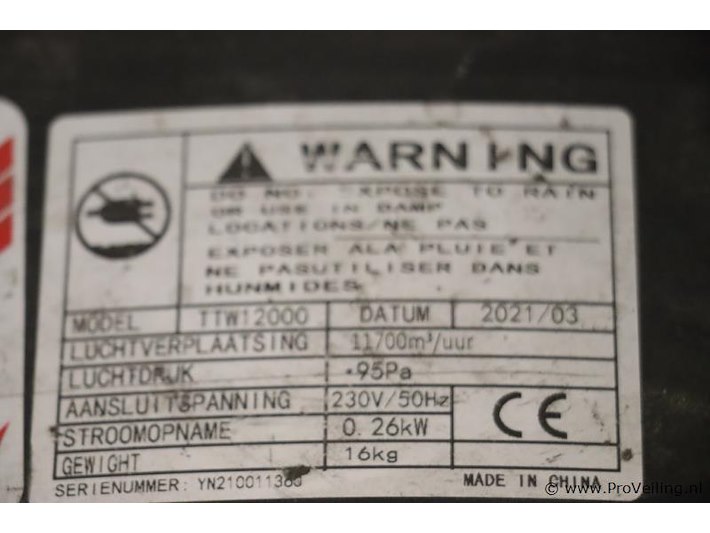 Dryfast Axiaal ventilator TTW12000; bouwjaar 2021; gewicht 16kg; zie afbeeldingen.