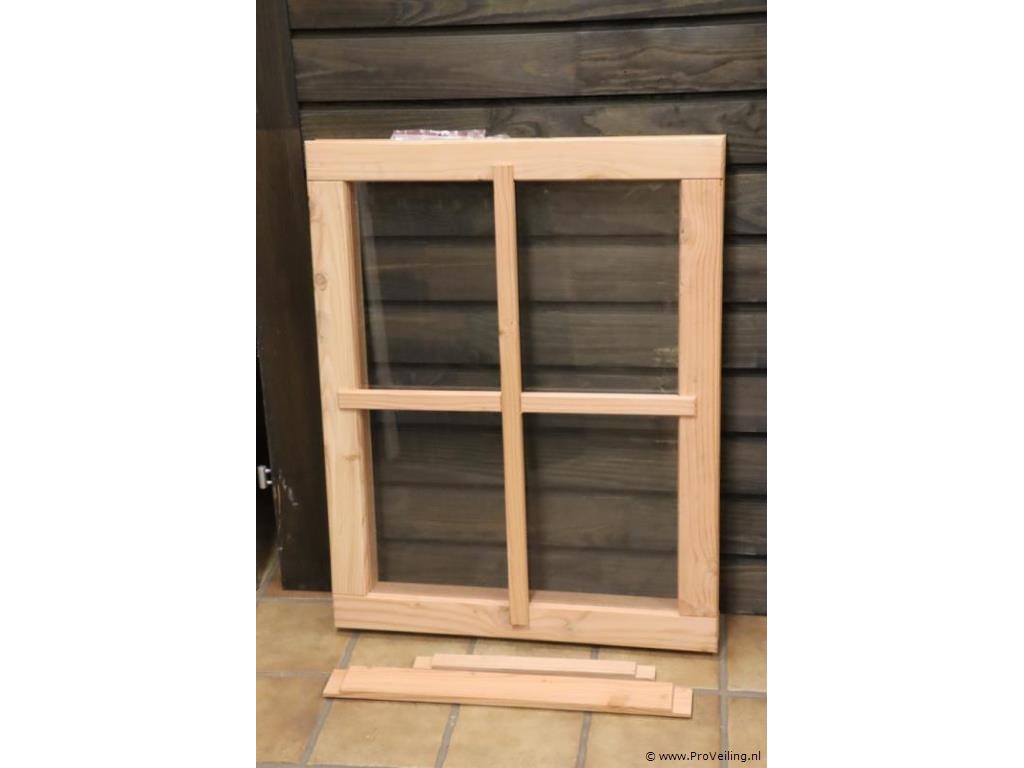 Houten raamkozijn; afmetingen ca. 81.3x7x64.3cm; nieuw; zie afbeeldingen.