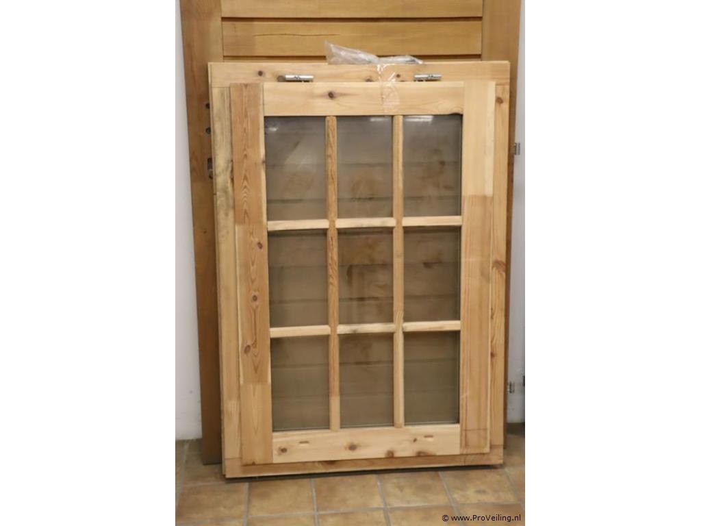 Houten raamkozijn; afmetingen ca. 88x8.5x125cm (binnenmaat) 90x8.5x127cm (buitenmaat); nieuw; zie afbeeldingen.