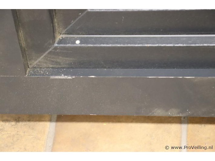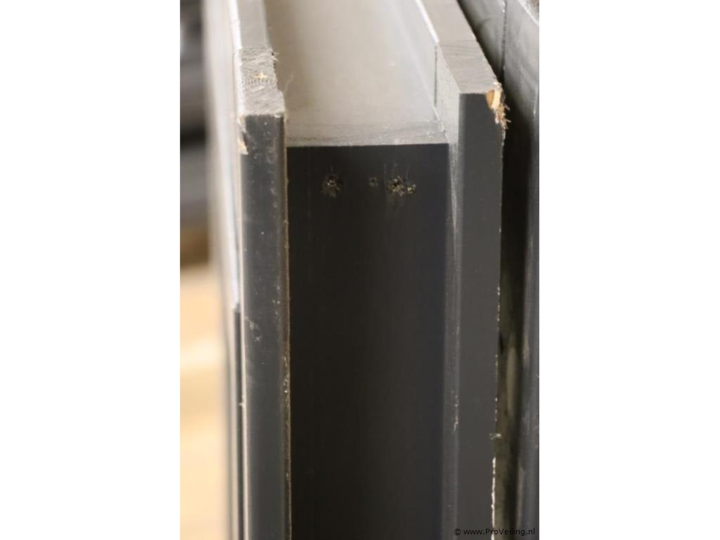 Houten raamkozijn t.b.v. tuinhuis; afmetingen ca. 81x11.3x104,5cm (binnenmaat) 83x11.3x105.5cm (buitenmaat); is beschadigd; zie afbeeldingen.