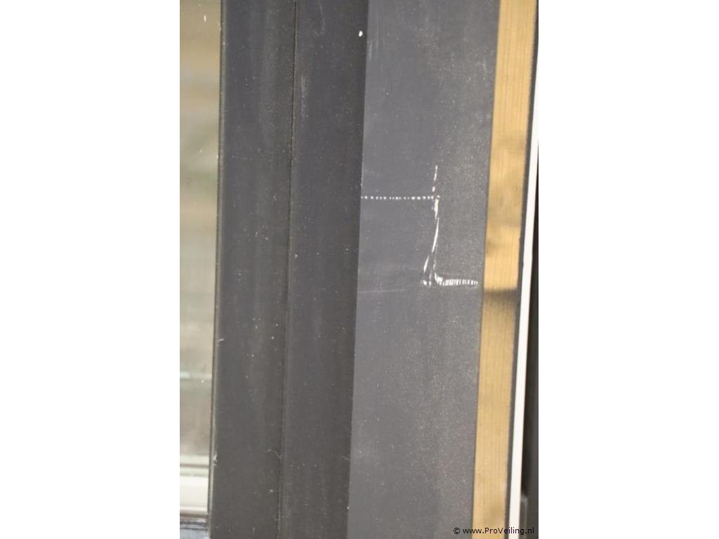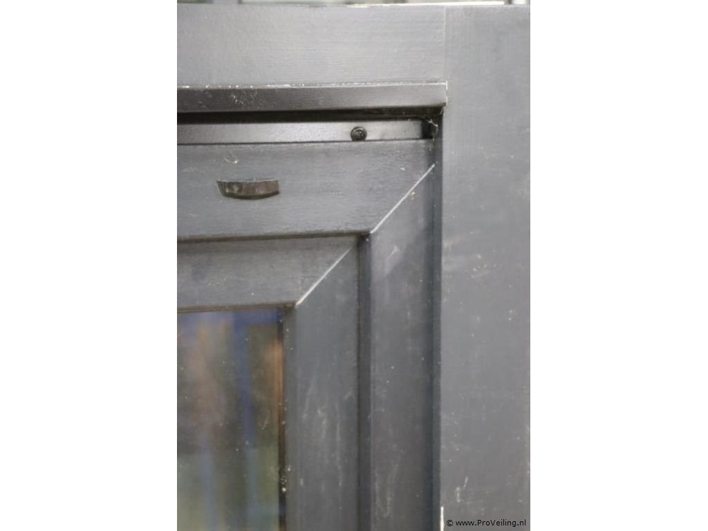 Houten raamkozijn t.b.v. tuinhuis; afmetingen ca. 90x10.5x111cm (binnenmaat) 95x10.5x114cm (buitenmaat); heeft beschadigingen; zie afbeeldingen.