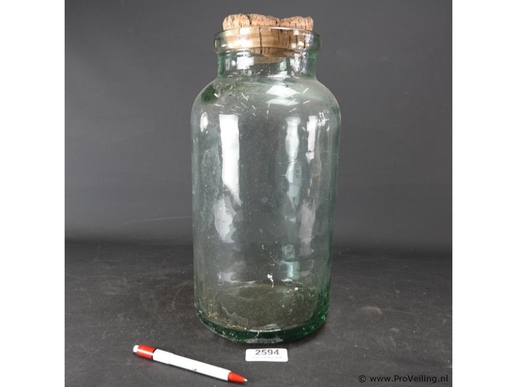 Antieke dikglazen pot met kurk