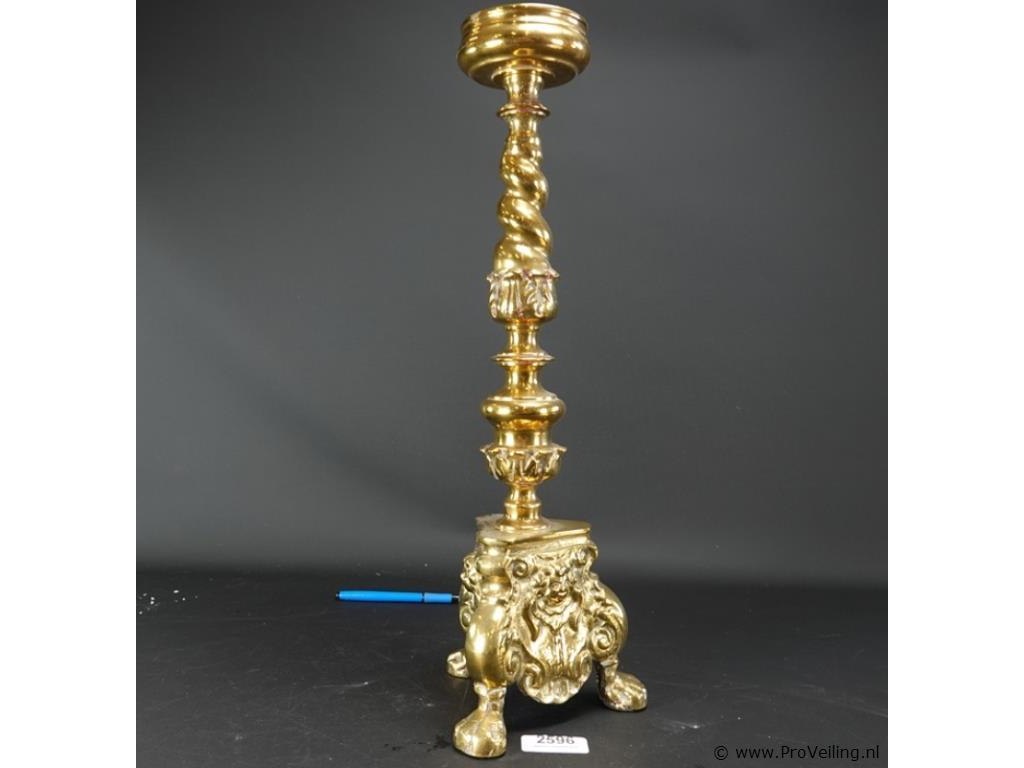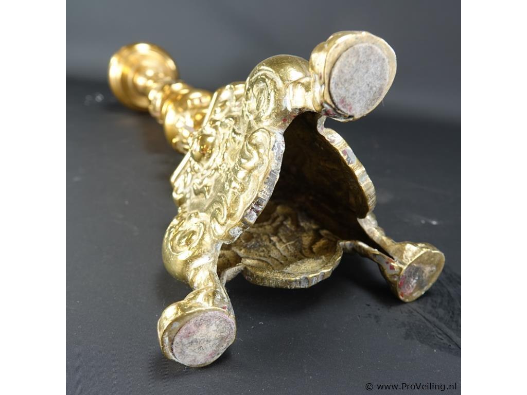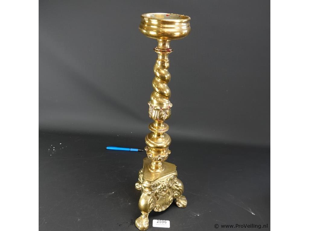 Antieke grote zware koper/bronzen kerkkandelaar