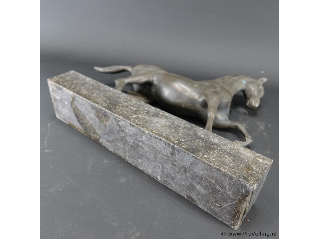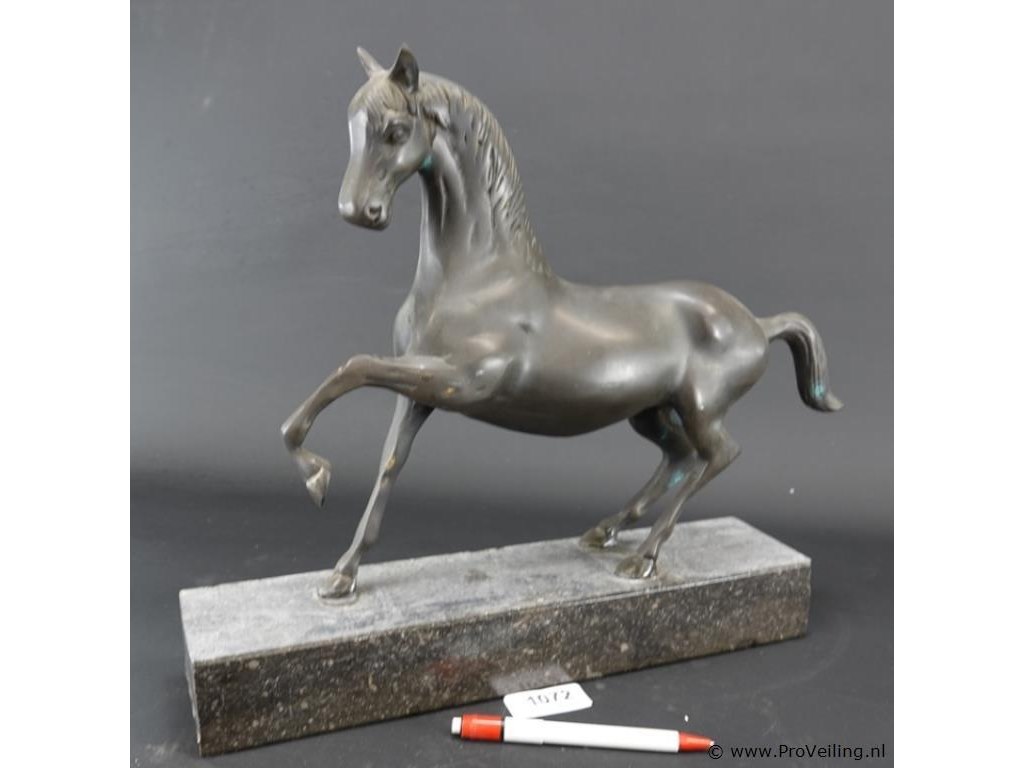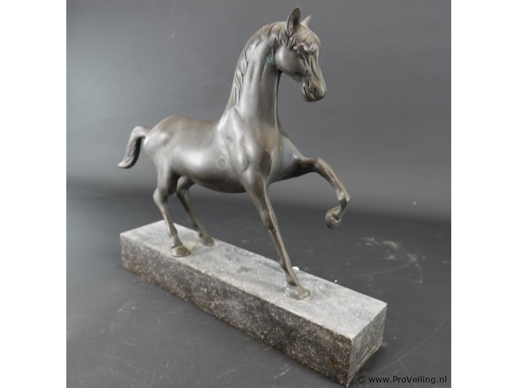 Groot faux bronzen paard op marmeren basement