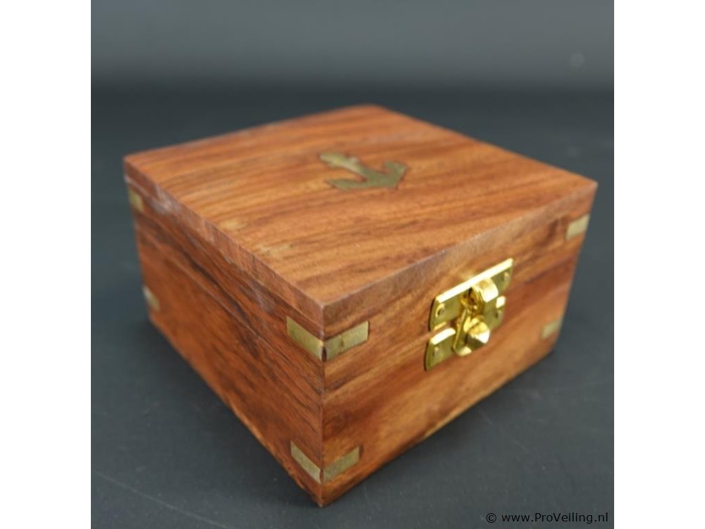 In met brons afgewerkte houten kist. H6cm/L11cm/B11cm/606Gr. Dit betreft een tijdens transport kwetsbaar product! Uw transportrisico voor deze kavel is zeker in combinatie met andere kavels hoog. Lees daarom a.u.b. ook de extra veilinginformatie voor deze veiling!.
